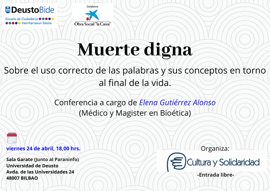 El próximo martes 3 mayo, a las 17:00 h. en el Auditorio de la universidad de Deusto.