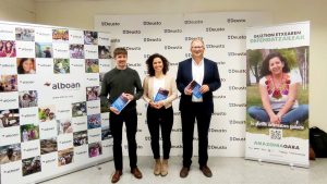 El decano de la Facultad de Ciencias Sociales y Humanas de la Universidad de Deusto, Javier Arellano, acompañado por representantes de la ONG Alboan, ha