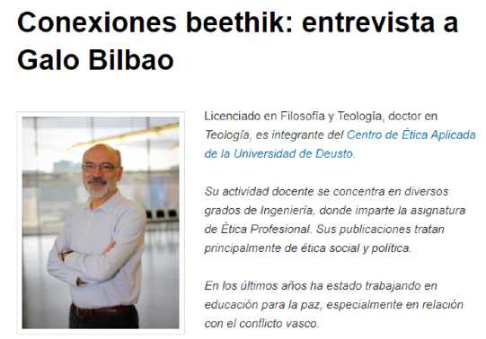 Galo Bilbao, miembro del Centro de Ética Aplicada, destaca en esta entrevista que “el reconocimiento del «otro» como un igual a «mí», en derechos y dignidad, más allá de lo que él sea o haga, es pieza fundamental de la reconstrucción de la convivencia entre «nosotros».