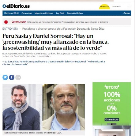 El responsable de Transferencia del Centro de Ética Aplicada y presidente de la Federación Europea de Banca Ética (FEBEA), Peru Sasia, ha concedido un entrevista a eldiaro.es junto al director general de FEBEA, Daniel Sorrosal. Sasia analiza la situación del sector y los retos a los que se enfrenta la banca ética en los nuevos tiempos que corren para la economía.