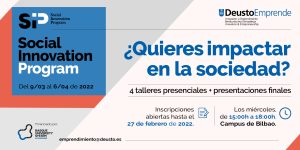El pasado miércoles 30 de marzo, tuvo lugar la cuarta sesión del programa Deusto SIP Social Innovation Program en el campus de Bilbao de la Universidad de Deusto. En esta cuarta sesión profundizamos sobrela escalabilidad y el impacto social de los proyectos. María Lambarri, Coordinadora de proyectos estratégicos en Deusto Social Lab y responsable de […]