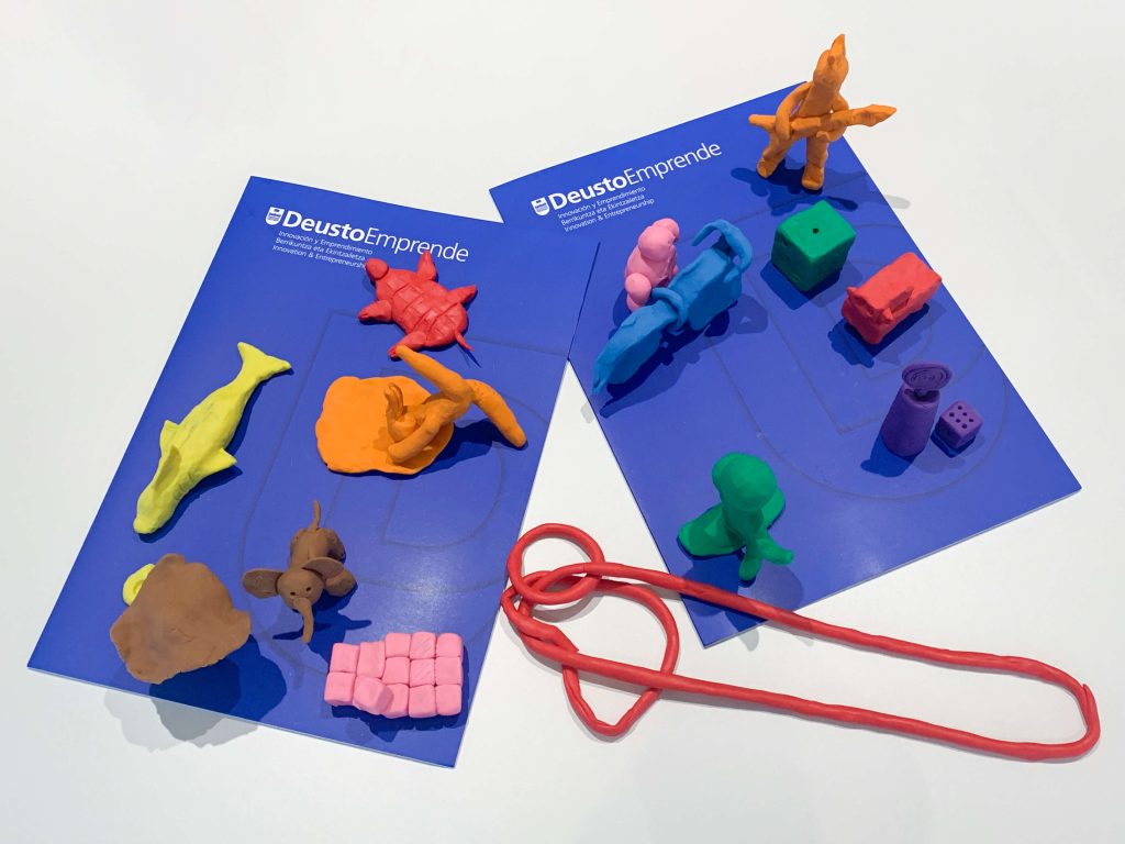 El coloquio comenzó con la introducción del círculo de Leonardo como primera ley de la innovación, donde los y las participantes entendieron la importancia del equilibrio entre la creatividad y la modelización en cualquier proceso innovador. Larrea utilizó un Puzzle y un LEGO a modo de herramientas que sirvieron para acompañar la explicación de esta primera ley. Además, les animó a los participantes a crear sus propios modelos y a poner en práctica la creatividad utilizando la plastilina para modelizar algo. El resultado de esta actividad fue realmente sorprendente ya que los y las participantes aprovecharon la oportunidad para crear maravillas como las siguientes: