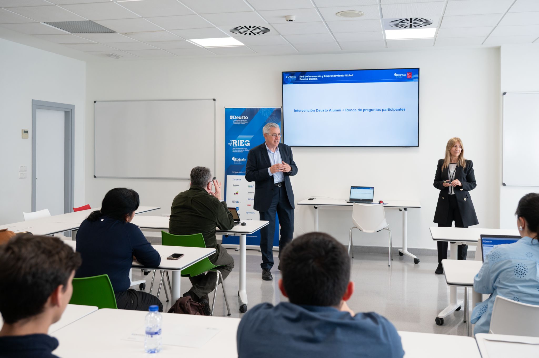 En el marco de la tercera jornada del programa RIEG, los participantes tuvieron la oportunidad de profundizar en las herramientas de orientación profesional ofrecidas por Deusto Alumni, la red de antiguos alumnos/as de la Universidad de Deusto. La sesión fue presentada por Víctor Urcelay, Vicerrector de Emprendimiento y Relaciones Empresariales, y por Garbiñe Henry, Directora de Innovación y Emprendimiento, quienes dieron la bienvenida a los asistentes y destacaron la relevancia de esta red como palanca para el desarrollo profesional.