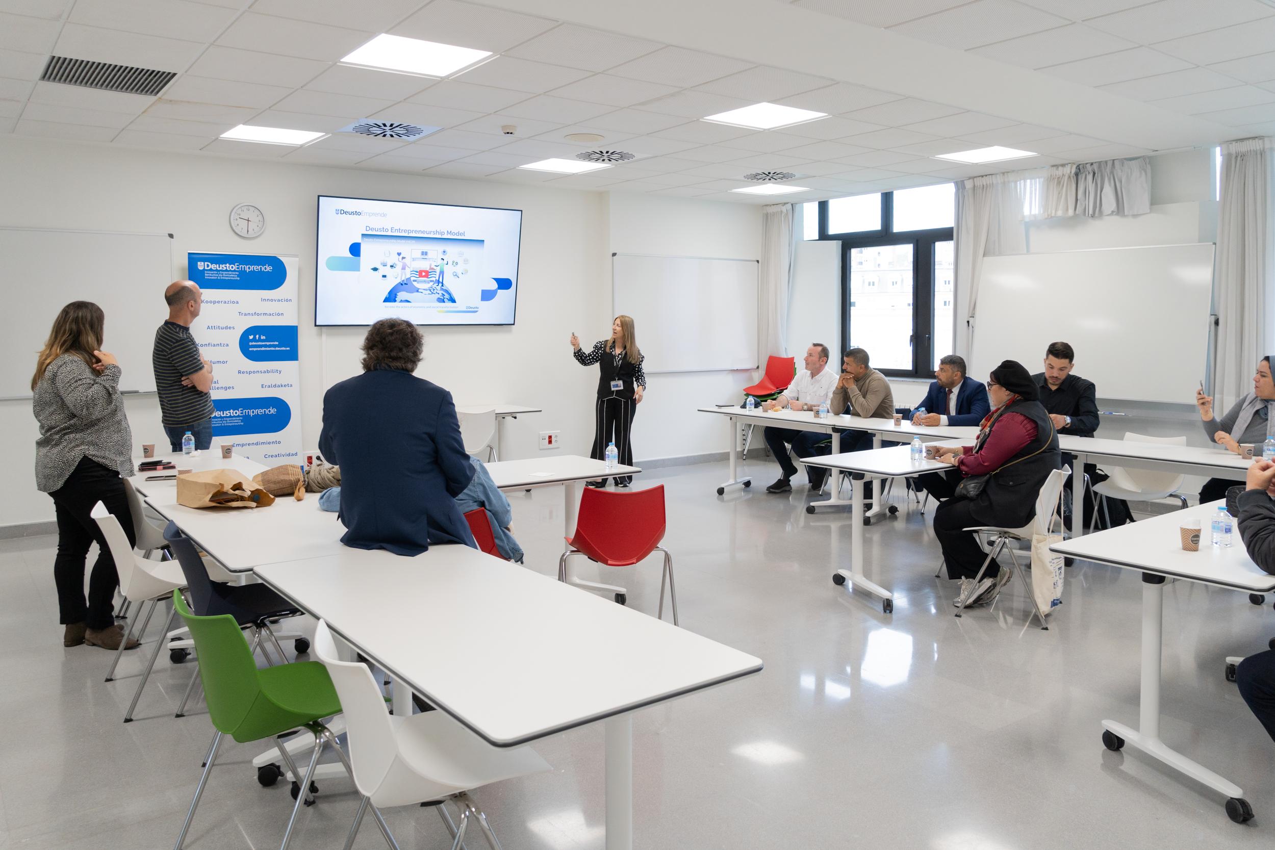 Durante la jornada, Garbiñe Henry, Oier Aurrekoetxea y Vanessa Angulo presentaron el modelo de Innovación y Emprendimiento de la Universidad de Deusto, compartiendo su enfoque, programas y metodologías. Asimismo, los participantes tuvieron la oportunidad de conocer las instalaciones en un recorrido que permitió mostrar el ecosistema emprendedor que se impulsa desde la universidad.