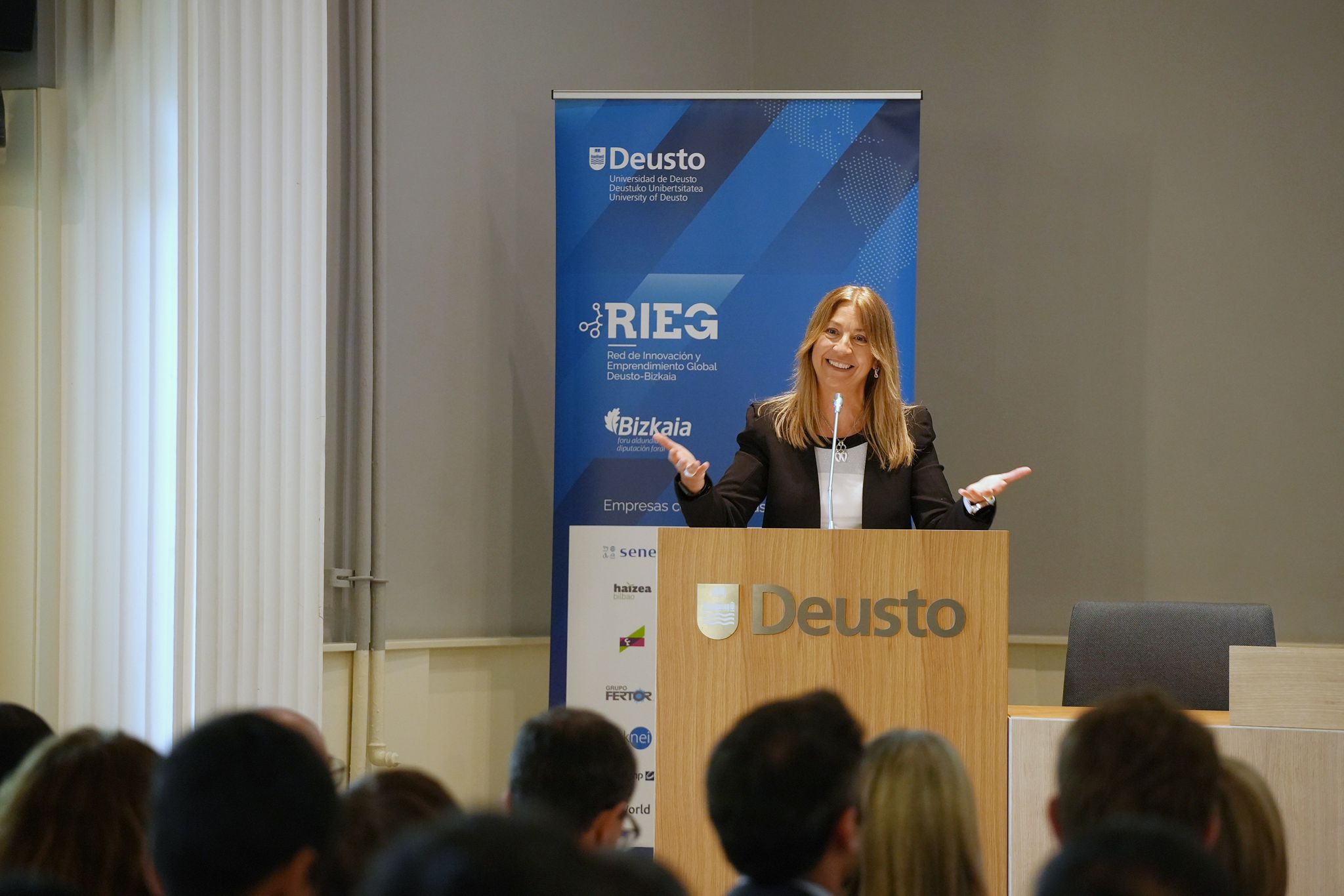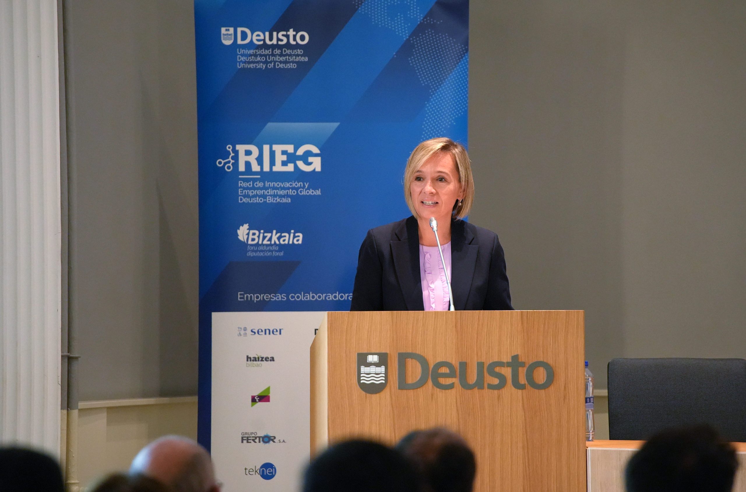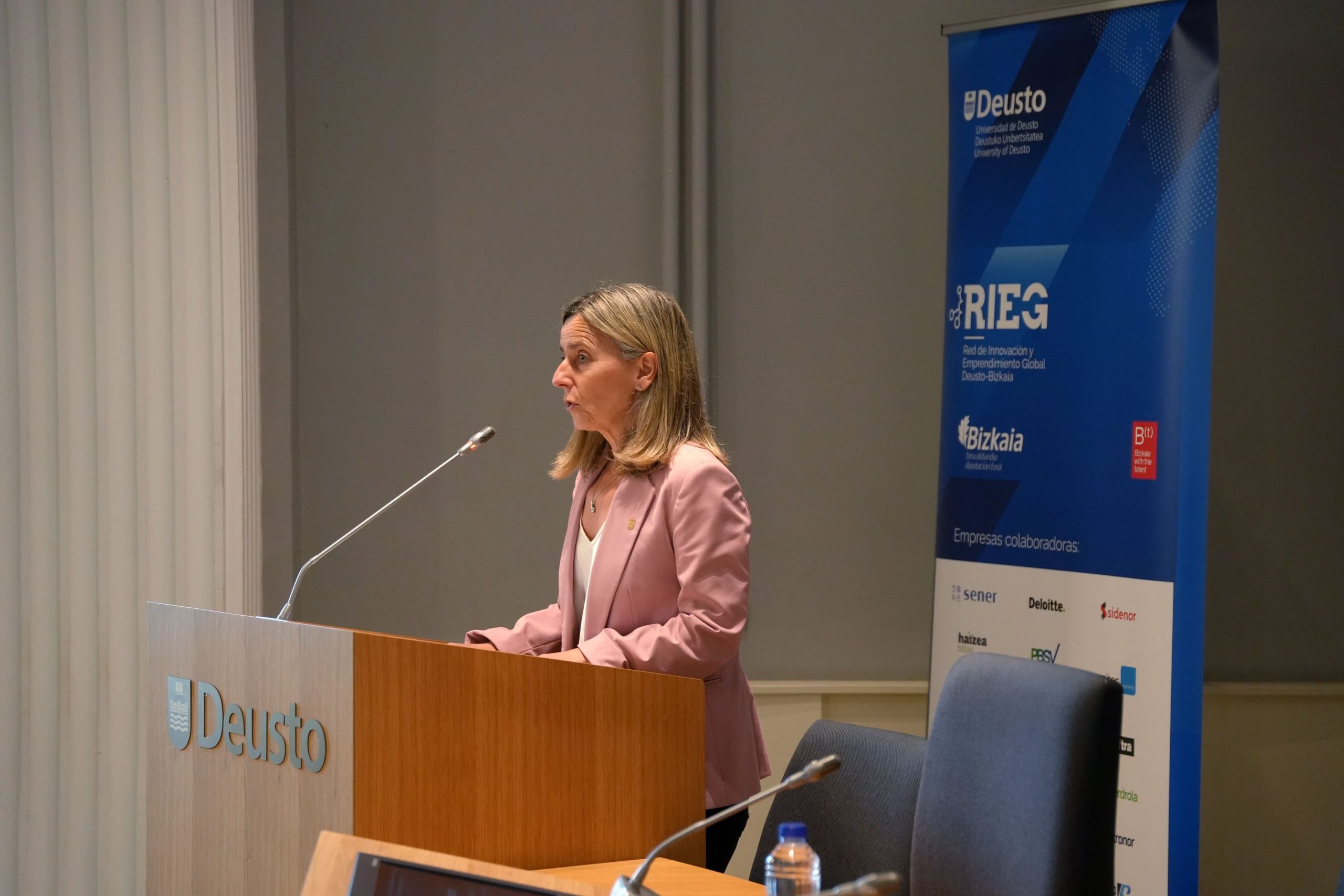Ekitaldian, María Jose Aranguren-ek, Donostiako campuseko eta Deustuko Unibertsitateko Erakunde Harremanetarako errektoreordeak, RIEGen helburua nabarmendu zuen: STEM talentua erakartzea gure lurraldera, Europako erronka demografikoen aurrean. Bereziki eskerrak eman zizkien Bizkaiko Foru Aldundiari eta Bizkaia With The Talent ekimenari, pertsonen hazkundea, hezkuntza eta lankidetza bultzatzeko unibertsitateak, enpresak eta erakundeak batzen dituen proiektu baten alde egiteagatik. Era berean, AUSJAL Sareko kide diren Latinoamerikako unibertsitate Jesuitekin izandako lankidetza eta testuinguruak eraldatzeko nahiz aukerak sortzeko, nazioarteko aliantzen ahalmena nabarmendu zuen.