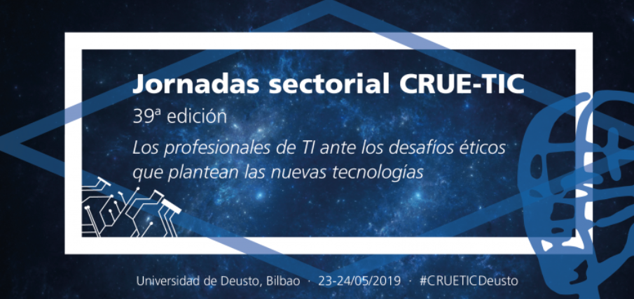 Os animamos a participar en las Jornadas de CRUE-TIC (Ed. nº 39) www.cruetic.deusto.es que congregarán en la Universidad de Deusto los días 23 y 24 de mayo de 2019 a más de 120 personas representando a cerca de 70 universidades.