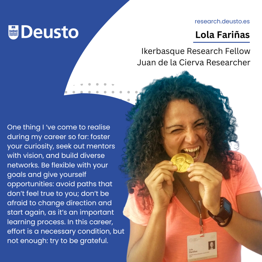Lola Fariñas is an Ikerbasque Research Fellow at the University of Deusto and a Juan de la Cierva Researcher funded by Spanish Ministry of Science, Innovation and Universities at the DeustoTech Technological Institute of the University of Deusto (Spain).