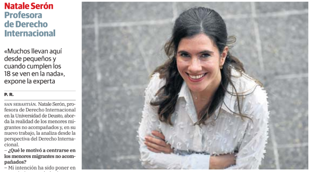 Natale Serón, profesora de Derecho Internacional en la Universidad de Deusto, aborda la realidad de los menores migrantes no acompañados y, en su nuevo trabajo, la analiza desde la perspectiva del Derecho Internacional.